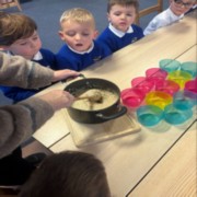 In two groups everyone had a go at scooping out the pumpkin, cutting it up, and adding it to the rest of our ingredients. The children worked together to stir the soup until it was ready and finally, it was time to taste!