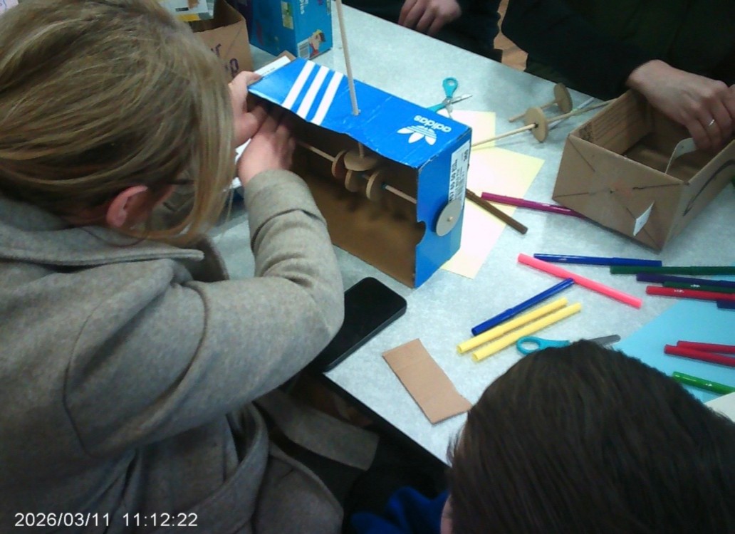 Parents and carers joined us in school to help the children design and build their cam mechanisms, which they had been planning in their lessons beforehand. It was wonderful to see everyone working together, solving problems and bringing their projects to life. The biscuits and juice definitely helped keep the creativity flowing too!