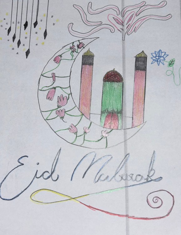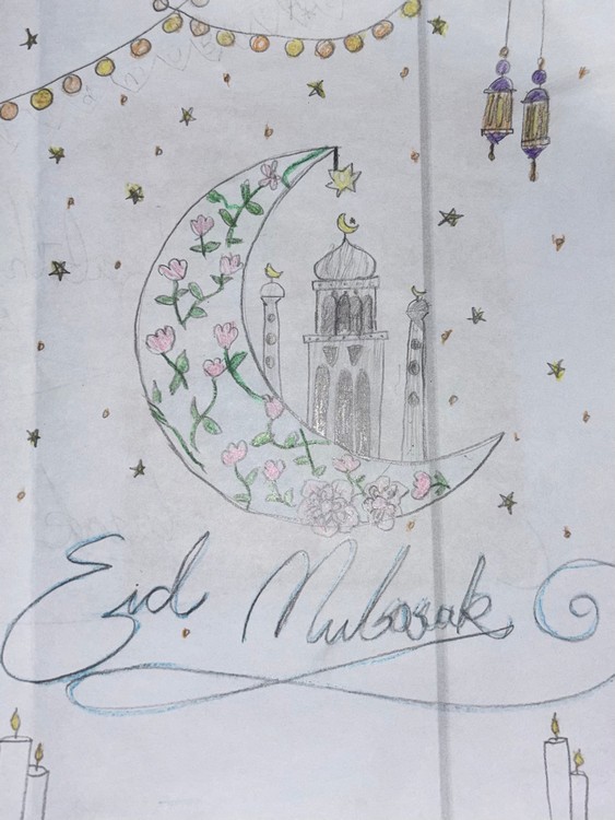 Inspired by this, the class created their own beautiful artwork using the crescent moon as a central feature. The children showed fantastic creativity, carefully designing and decorating their images with patterns, colours, and thoughtful details to reflect the joy and significance of the celebration.