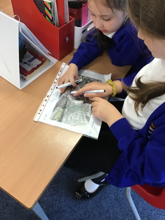 When we returned to school, we used a map and an aerial photograph to follow our route and spot the different features we passed on the way.